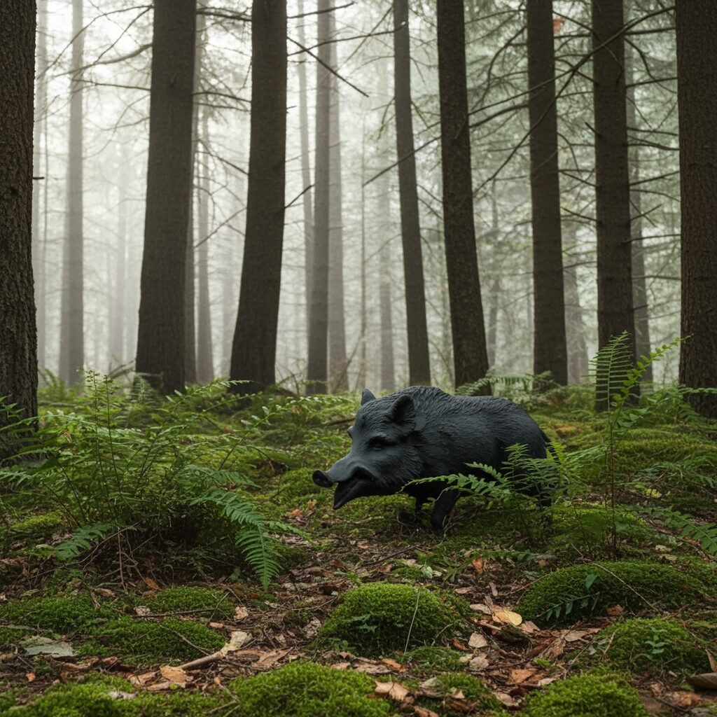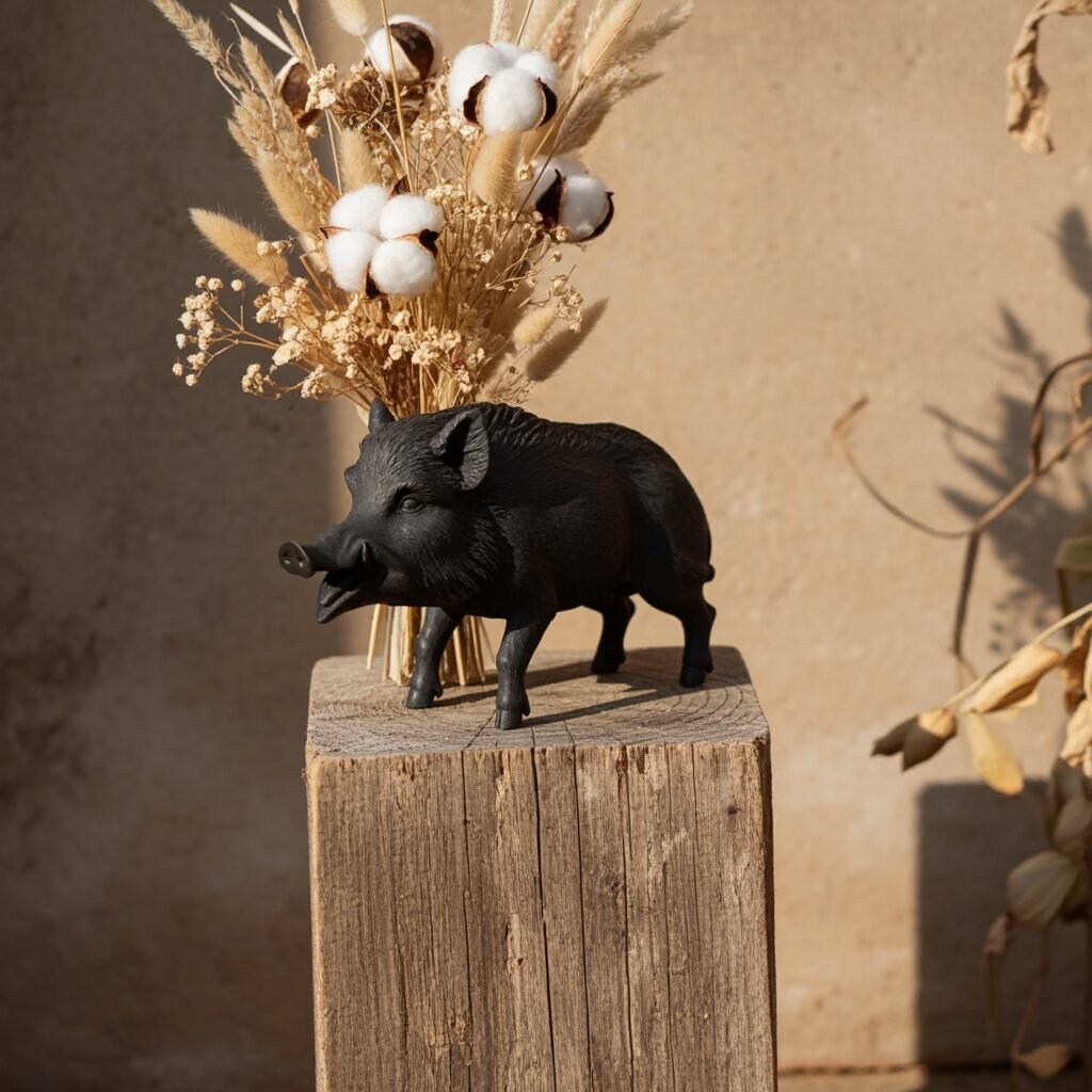 Beautifully handcrafted Sicillian Authentic Mt. Etna Lava Black Boar Statue.