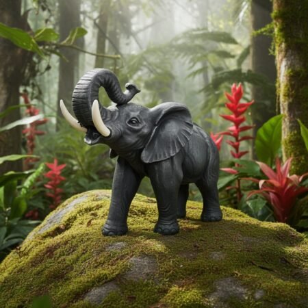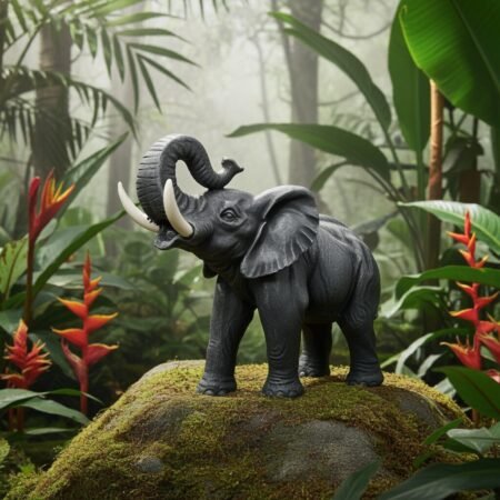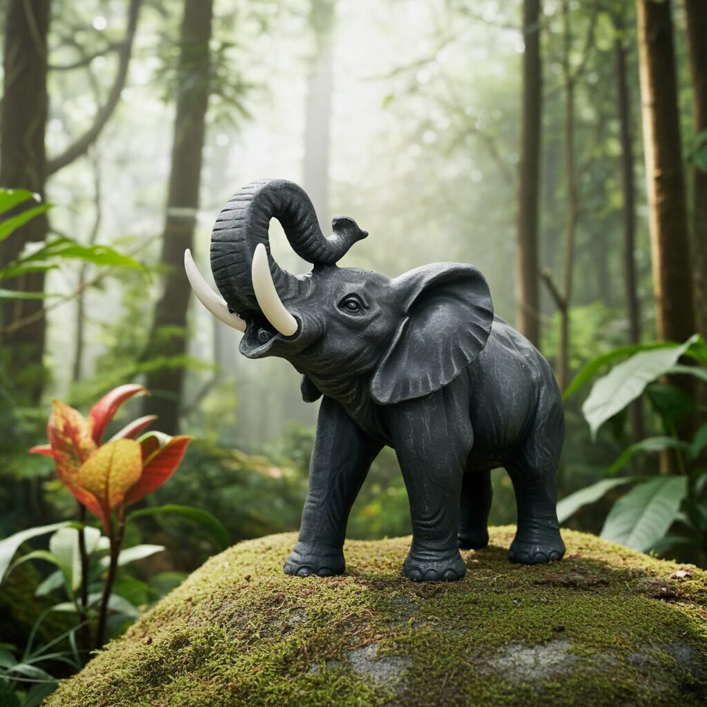 Beautifully handcrafted Sicillian Authentic Mt. Etna Lava Black Elephant Statues with cream Tusks in 2 different size options.