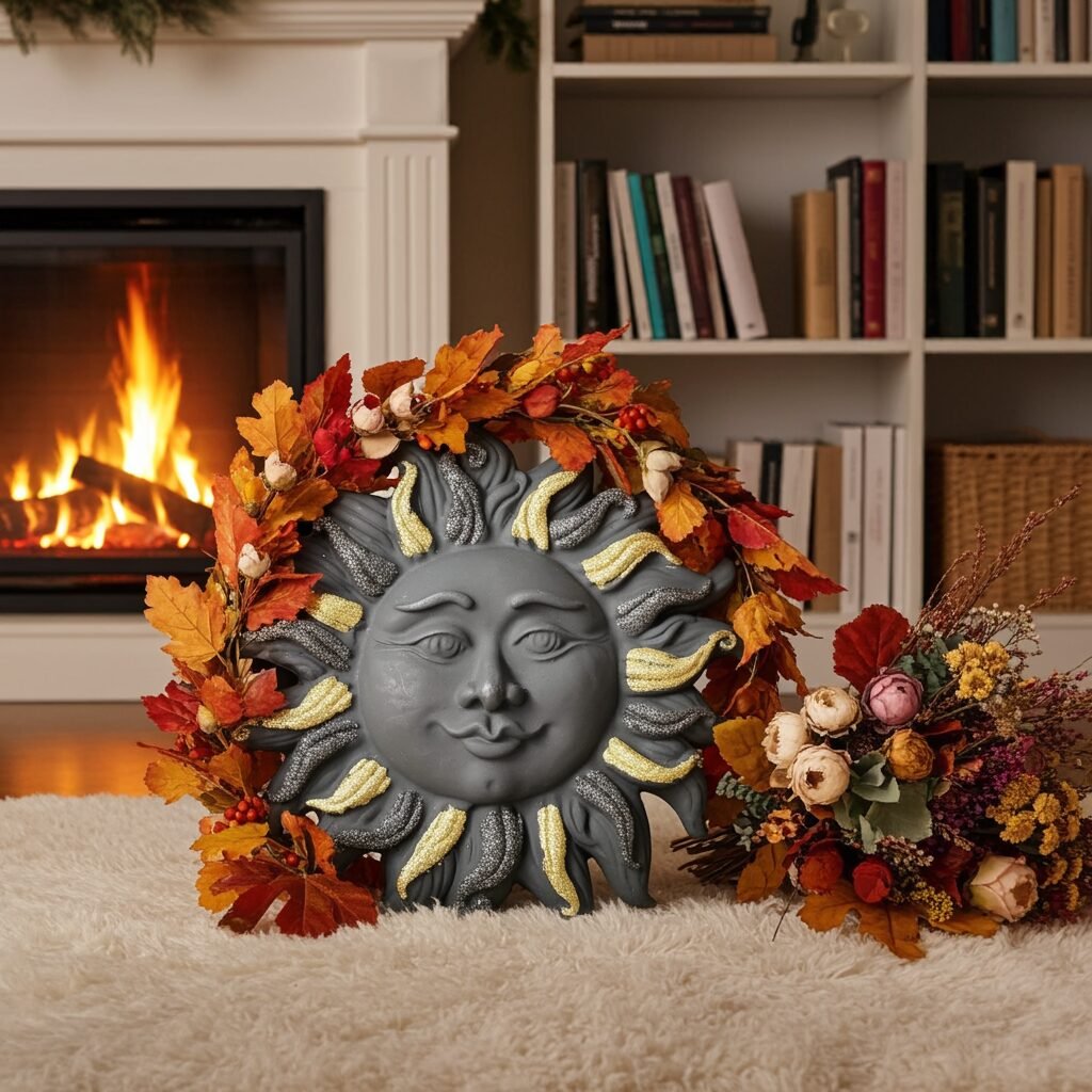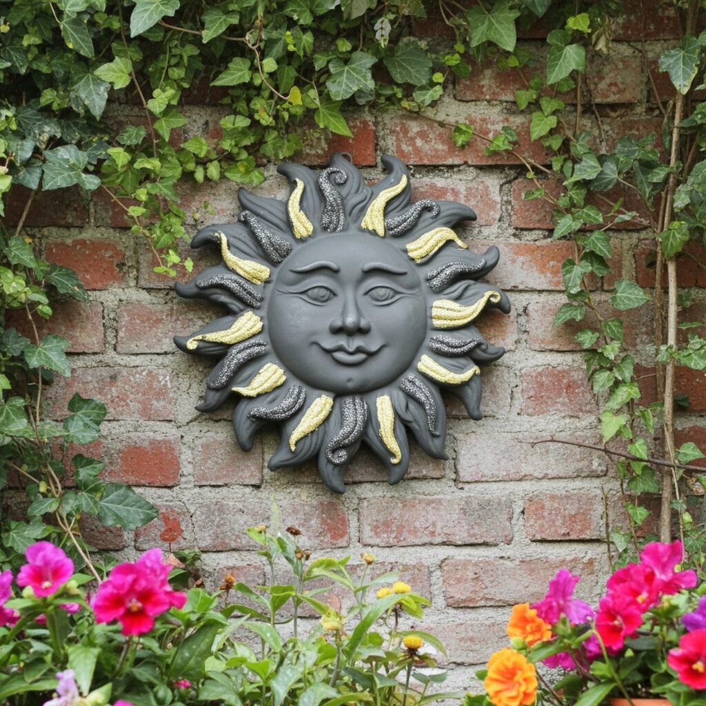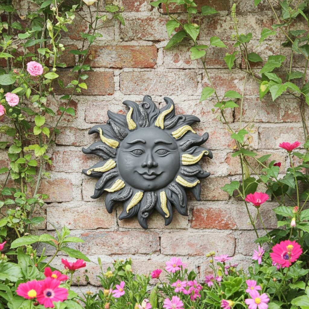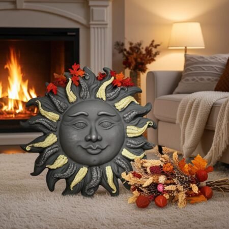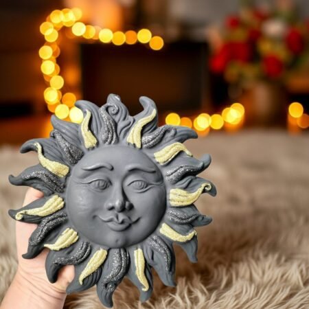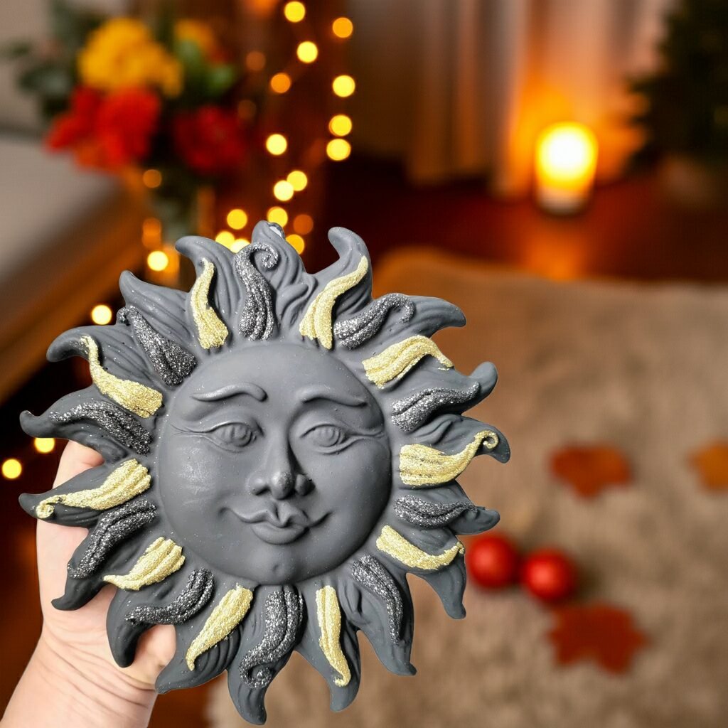 Unique handcrafted Sun with black and gold glitter created from Authentic Mt.Etna Black Lava from Sicily, Italy.