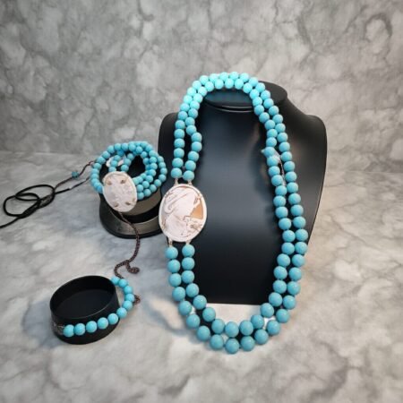 Be the first to review “Necklace and Bracelet with Turquoise paste stones and Sardonic shell Cameo, made in Sicily, gift for her, bridal necklace, wedding, camée, custom, mother’s gift, genuine italian cameo.” Cancel reply