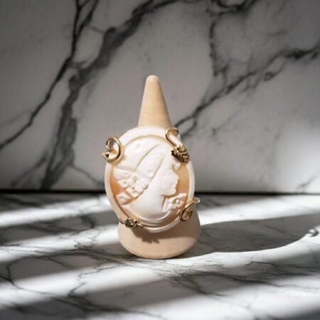 The entire cameo is cut from 1 piece of sea shell.